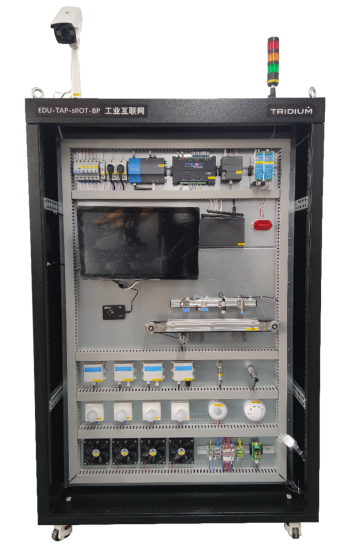 硬件部分為一體式實(shí)驗(yàn)平臺(tái)、服務(wù)器設(shè)計(jì),以站立工位為基礎(chǔ)載體,使用安全可靠、拆分、組合、收納,可供課堂或?qū)嶒?yàn)室教學(xué),便于與PC機(jī)搭配在學(xué)校實(shí)訓(xùn)室進(jìn)行實(shí)驗(yàn)教學(xué)。主要部分由智能網(wǎng)關(guān)、開發(fā)板與圖像/語音采集模塊、視覺實(shí)驗(yàn)?zāi)K、環(huán)境感知采集模塊、工業(yè)設(shè)備控制模塊、可視化模塊、執(zhí)行器模塊組成。