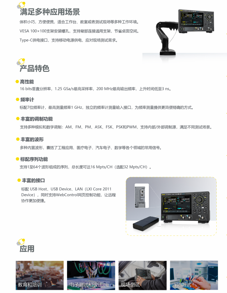 DG900 Pro 系列函數(shù)/任意波形發(fā)生器具有 1.25 GSa/s 最高采樣率,標(biāo)配 16 Mpts/CH 最大存儲深度,集函數(shù)發(fā)生器、任意波形發(fā)生器、噪聲發(fā)生器、脈沖發(fā)生器、諧波發(fā)生器、模擬/數(shù)字調(diào)制器、頻率計(jì)等功能于一身,是一款多功能、高性價(jià)比的雙通道函數(shù)/任意波形發(fā)生器。